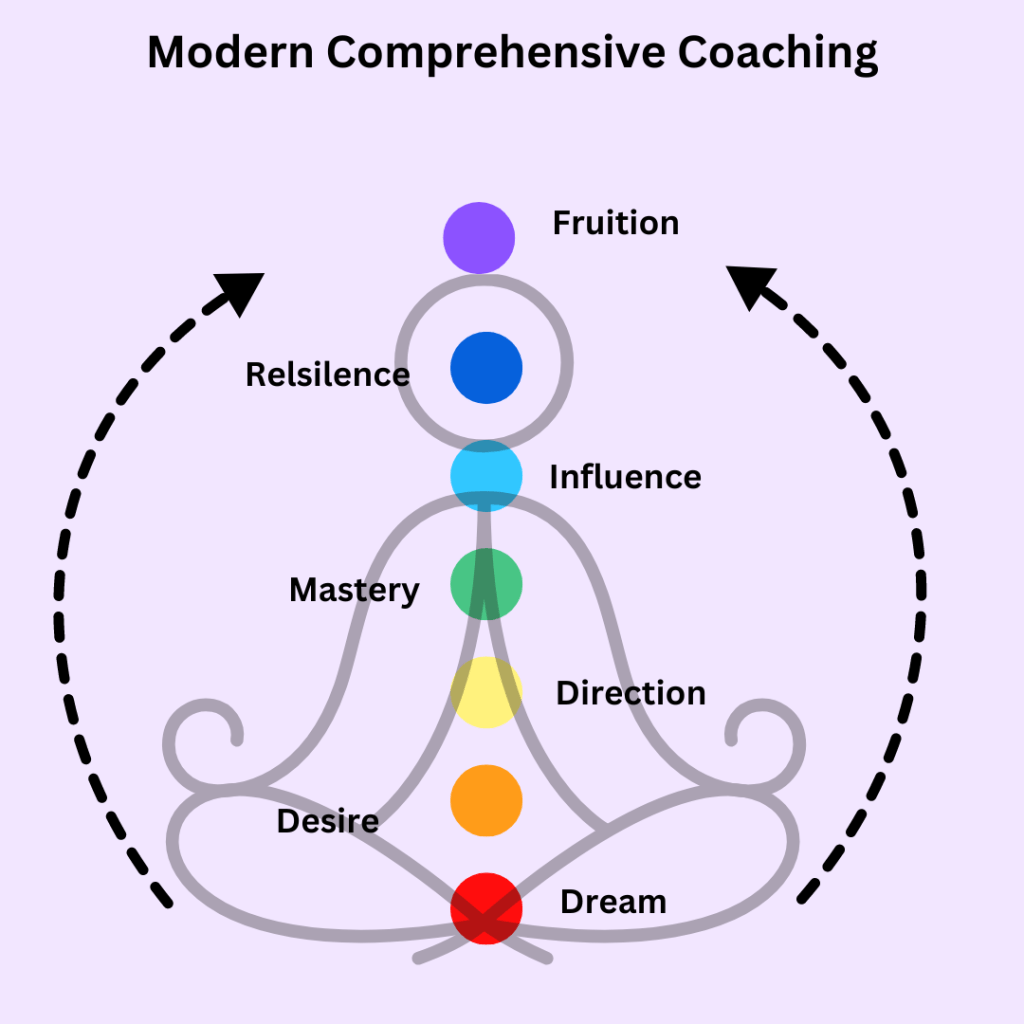Central to Modern Comprehensive Coaching is the focus on human chakras—energy centers that govern various aspects of life. Each chakra is associated with specific qualities and functions, and by addressing these energy centers, the coaching model provides a more nuanced approach to personal and professional development. This focus on energy centers enables individuals to tap into their inner potential and achieve peak performance.